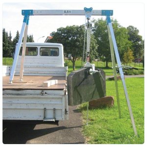 I can visualise how it would work. A similar principle to this tombstone lifter, except this one sets up and packs away on site.
