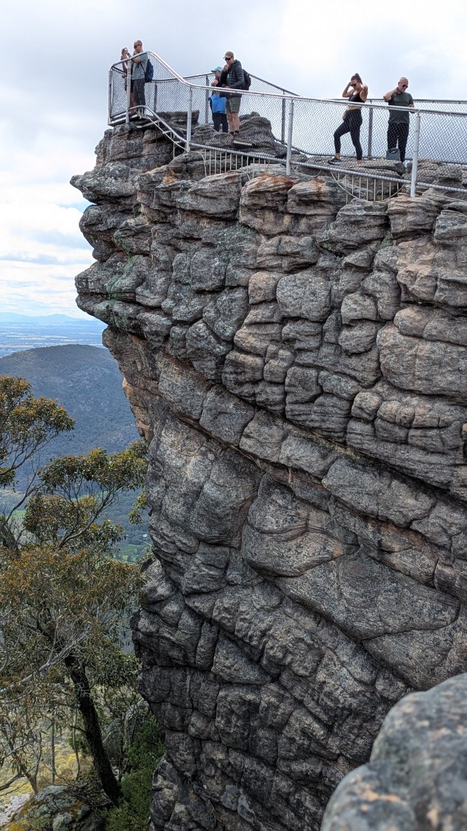 It never ceases to amaze me that tourists get within a metre of huge cliffs without anything to stop them being blown off the edge - yet if you worked anywhere within 20 metres of that drop, Worksafe would make you wear a hardhat, safety specs, a safety harness, and they'd also require another person to be on standby watching for you potentially making a mistake. I can recall a woman falling off the edge at one of the clifftop whale-watching areas along the Bight in Western S.A. and Eastern W.A. in recent years. Those Bight cliff edges are particularly dangerous, and only a few spots have railings. A gust of wind can come out of nowhere, and send you straight over the edge. -