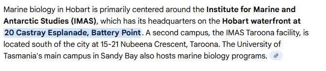 Ah yes IMAS. I was thinking of the Australian Maritime College which is up north.