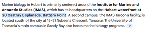 Hobart, or Launceston? For some reason I thought the marine biology course is up north. May be mistaken.