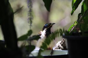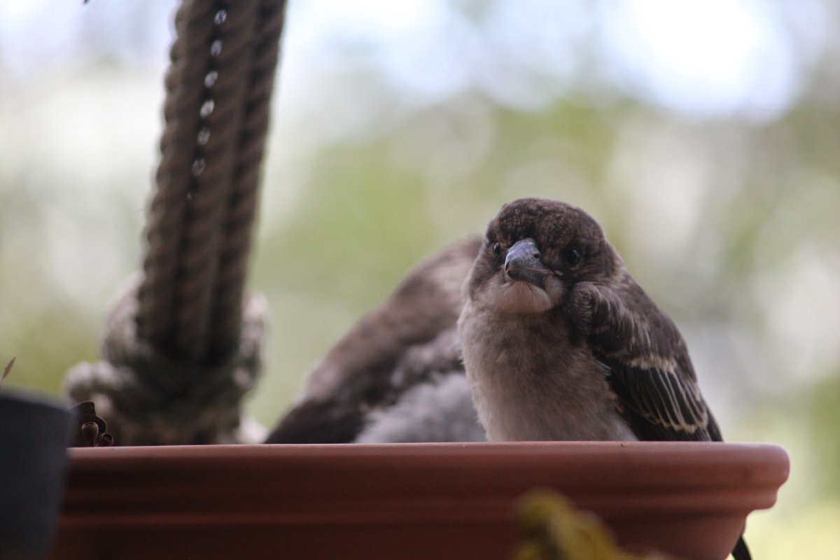 I've enjoyed having my 10 year old Canon EOS 700D working again. Sometimes the phone camera just isn't enough. I misplaced the Canon battery charger and had been looking for it on and off for about 18 months, so that's how long the camera has sat idle. I was about to buy one on eBay when I finally found the charger (in the most obvious place). Here's a couple of pics of the birdy friends hanging out at the verandah bird bath. First one is three Butcher Bird fledglings. It's a family of five this year; mum and dad Butcher Birds are very proud. Second one is a Blue-faced Honeyeater. Lens is a Canon EFS 55-250mm.. I'm not much of a photographer, just point and click, but I do like to keep it on the manual focus setting instead of full auto.