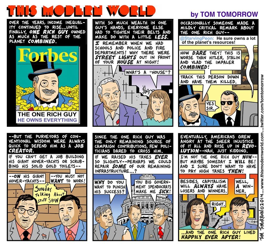 The last panel clearly sums up the Ameican attitude.2 points