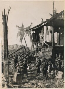 Getting off topic a bit here, but this photo of my dad and his platoon making their way up through Balikpapan was taken on the first day of the landings. The same day, another platoon in their company got strafed by a trigger happy American plane. Lucky nobody was killed but some were wounded. They were right out in the open as well, in clearly visible land just off the beach.2 points