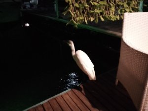 Our local matte Zoro, the greater egret. He always hangs around even sticks his head inside to say hello.