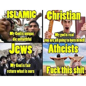 Caution. The attached graphic contains a naughty word and very naughty word. But it does contain humor for non believers.