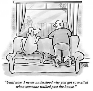 The dog ran off last night. So there I was walking around calling his name for 20 minutes but I couldn't find him. My wife said I should look harder, So I shaved my head and got a tattoo. But I still can’t find the dog. . .