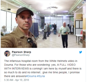 Quickie from Pearson Sharp, the reporter shown in the OAN video. I doubt if it was MY pathetic email that prompted this, ( HAHAHA ) but others have obviously asked for more information. [ATTACH]49299._xfImport[/ATTACH] If there is no internet,. . .I wonder how he got that Twitter message out. . . As many people predicted, and to be honest, I fully expected. . .( anything which goes against the Establishment narrative always IS ) well respected UK Journoe Robert Fisk and his report from Douma has been hysterically trashed, mainly by social media in the UK today as an 'Arab Loving Scumbag' etc. It has been comprehensively ignored by UK MSN. I'm waiting for Sharp's report. This also, I predict, will be denied as false, however it turns out. He currently needs a film crew, and a translator or two, as he has admitted to being alone on the site. . .. Since there have been reports of the OPCW inspectors being shot at . . .this may be a big ask. I wonder who is doing the alleged shooting ( rhet ) -