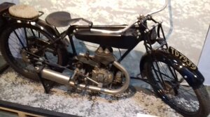 Anyone recognize this Bike ? [ATTACH]49303._xfImport[/ATTACH] The Motorbike of a Man With the Stomach for a Fight James Hewitson was a Coniston man who was wounded four times in the First World War and who returned to the fray four times. This young man had the stomach for the fight. On the 26th of April 1918 at Givenchy Lance Corporal Hewitson was leading his troop against a squad of German soldiers operating out of bomb craters. He and his men cleared out their main objective, Hewitson personally killing six men who refused to surrender. Before he had time for a breather he recognised that a machine gun post was being set up to bear down on his squad. He flanked the machine gun crew, personally killing four of the enemy and capturing another. On the same day he routed a German bombing team that was attacking his Lewis gun position, killing a further six German soldiers. James was awarded the Victoria Cross for his outstanding bravery. James Hewitson lived his whole life in Coniston until he died in 1963, during this time he had long spells in hospital due to shrapnel embedded in his back; he was buried with military honours at St Andrews Church Coniston. His fully restored motorbike, which cost him £47/17/6, is part of the exhibition. Here is a testament to a very brave and humble man. This bike is an a small museum in Coniston town. Donald Campbell's Bluebird, removed from the water in 2000, and now fully restored, will be displayed nearby. Coniston Water was chosen fro Cambell's attempt at the world speed record, it is 8.9 Kilometres long giving a fairly straight run. The Chap I got the details from forgot to identify the Bike ! -