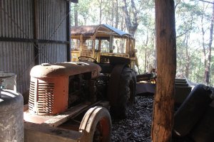 This is my bottom shed, it's the worst one. It's still half full of cow dung and the old cow died almost two years ago. She used to camp in there when it was raining. The shed needs a total clean out to make better use of the space. There's a bit of old stuff in there like a vintage lawn mower and an old BSA side valve stationary engine that was on my grandfather's mower. I've even still got the 32 volt generator and 240 volt inverter in there that was our power plant when I was a kid. About half the shed is taken up by an old David Brown petrol engine tractor that hasn't run for years. I think it's an old 24D, circa 1950's.