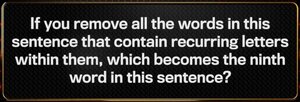 red750 Posted July 18, 2024 Author Posted July 18, 2024 Correct. 301 x 1, 0 x 192, all others x 300 If a flea likes to sleep on a leaf and a hornet likes to sit on a throne, a horse likes to gallop along a what?